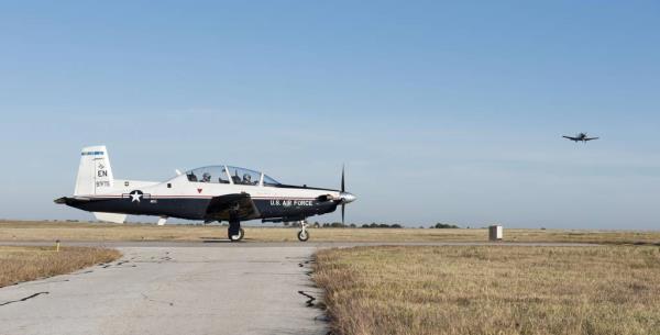 双座涡轮螺旋桨的德克萨斯ii型教练机用于向空军和海军的新飞行员传授基本的飞行技能,然后再向他们学习更先进的飞机。