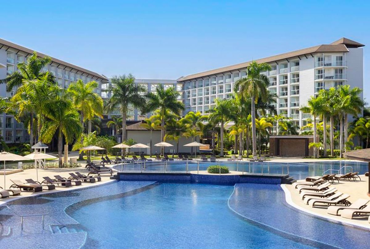 位于蒙特哥湾(Montego Bay)的皇家蓝水度假村(Hideaway Royalton Blue Waters)拥有352间客房和套房。