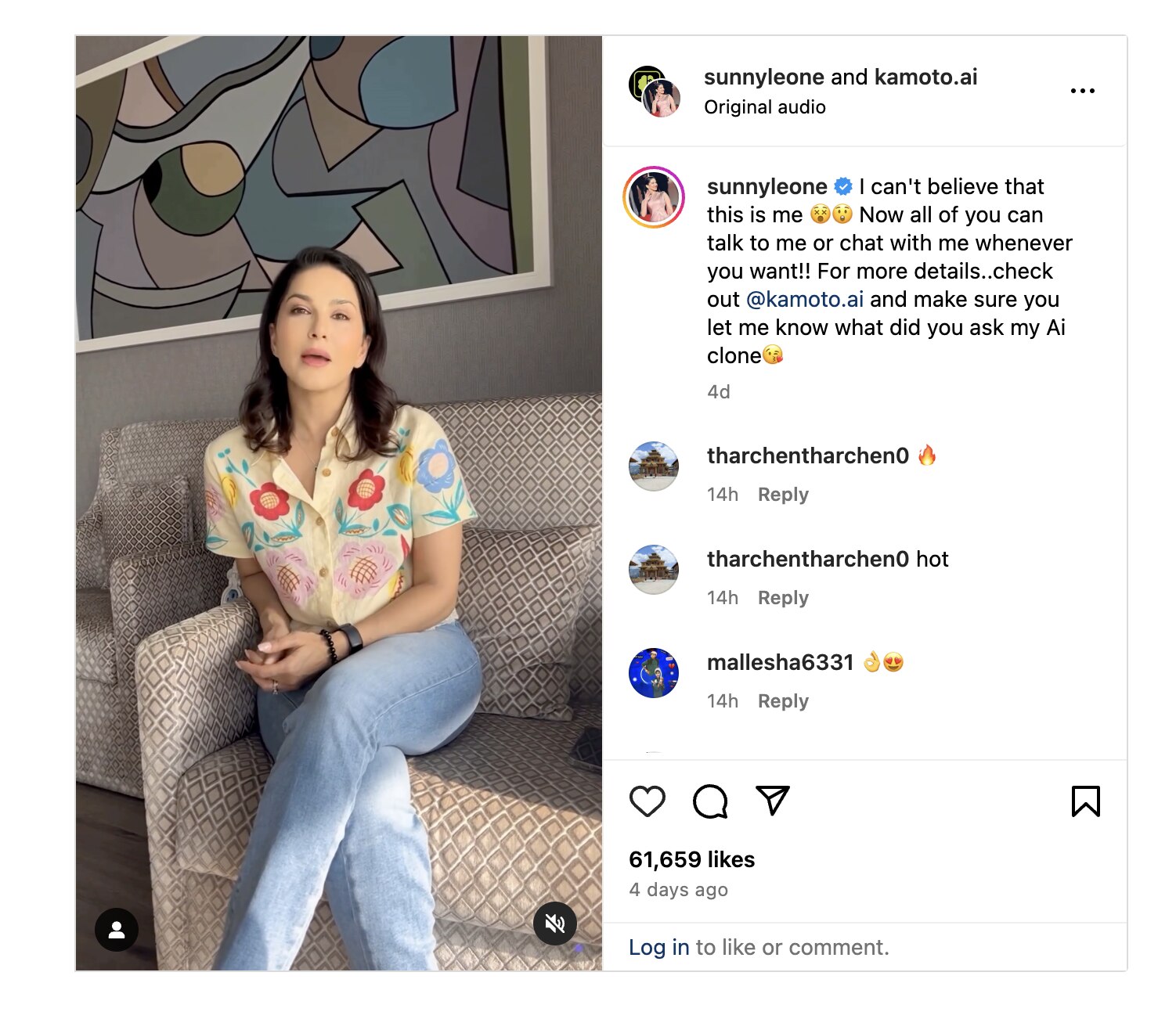 的确,不是。现在,除了网红,名人也开始创建自己的虚拟形象,最新的一个是Sunny Leone。在人工智能也被认为是创意专业人士的威胁的时候,这位《Raees》演员分享说,现在它可能就像《狂野西部》,每个人都在试图找出如何与之合作:“这是一个闪亮的新事物,每个人都在尝试新事物。明星们担心的不仅仅是被取代他们的肖像被滥用了。去年我们看到这种情况发生了很多次假照片、假视频甚至假声音都被放了出来,造成了威胁。”